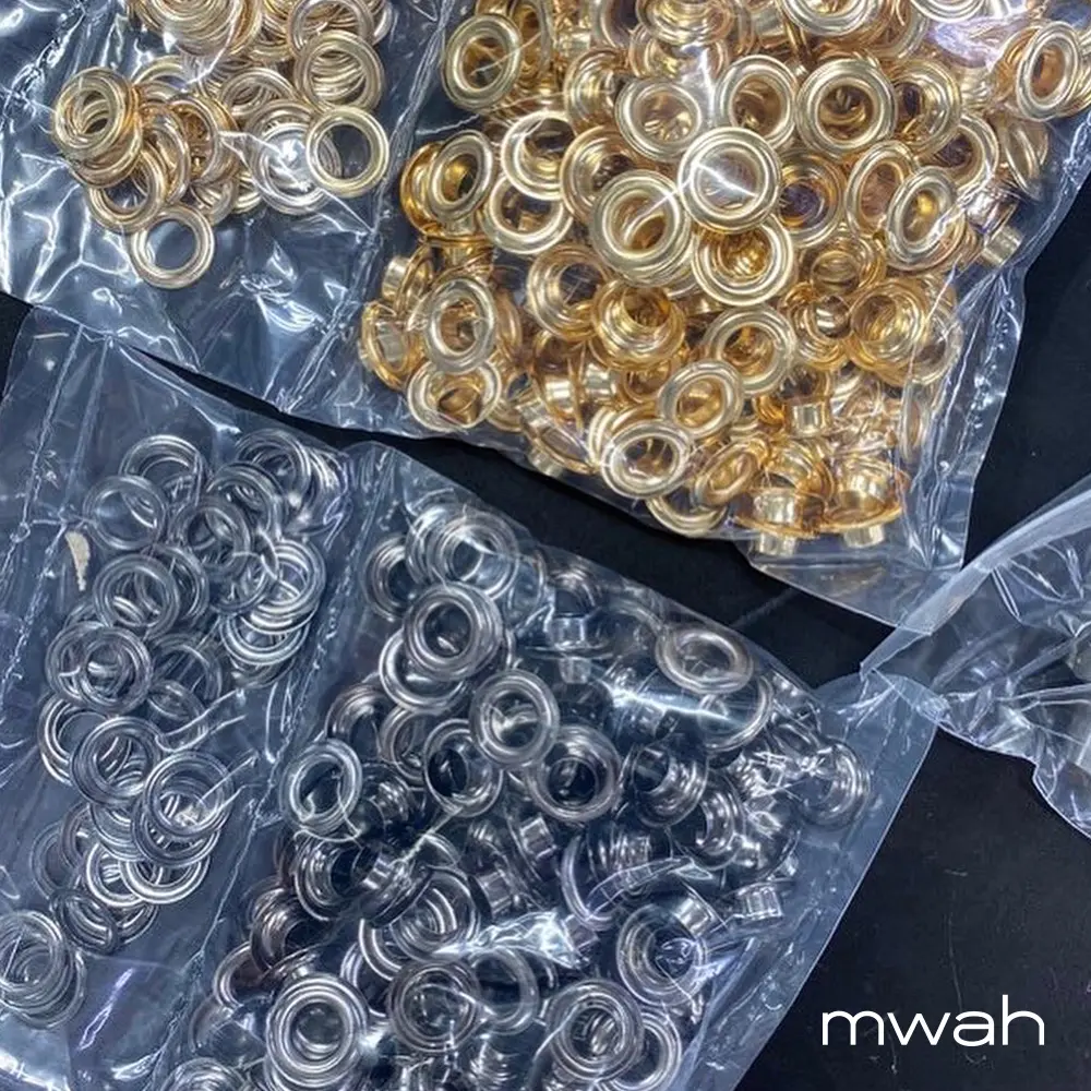 금속장식인 아일렛과 T바를 부착해서 블링한 고급스러움과