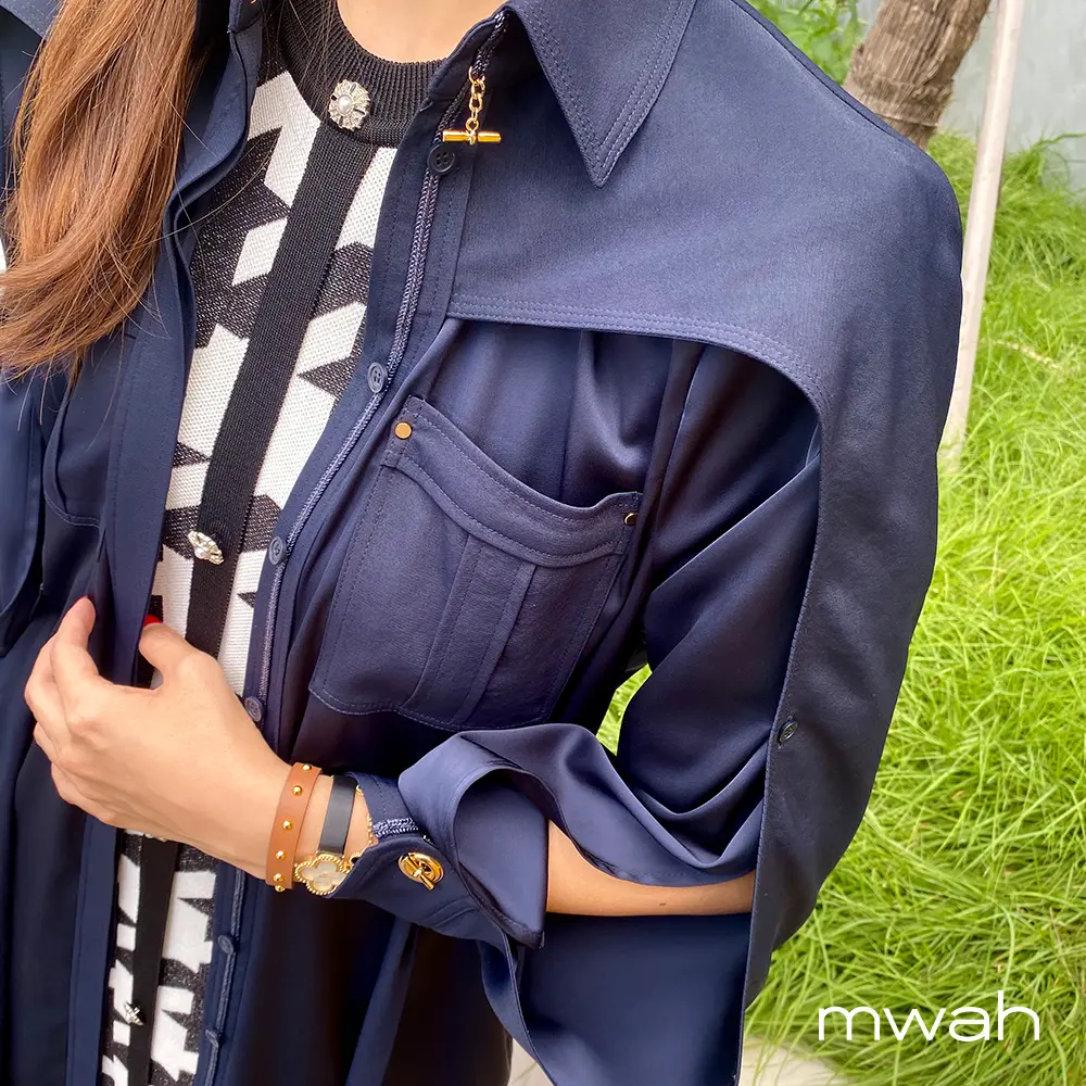 여성스러움을 표현했어요! 컬러는 네이비에는 옐로우골드로,
